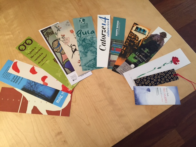 En resum: qui vulgui saber quina mena de punts m’agraden, que es miri la foto d’aquí al costat. Us he de dir que els que faig servir més són els de La Central i La impossible, dues llibreries de Barcelona que molts coneixeu. També trobo especialment bonics els de Nørdica Libros i Edicions del Periscopi, però confesso que faig servir molt més els dos primers. Un detall curiós: veureu que el de La Central porta una ranura que se suposa que fas servir per marcar el full, i això va en contra del que us he dit més amunt. Juraria que fa uns quants anys, quan vaig descobrir aquests fantàstics punts que es fan amb diverses variants i colors, no tenien la ranura. I, en tot cas, no la faig servir.