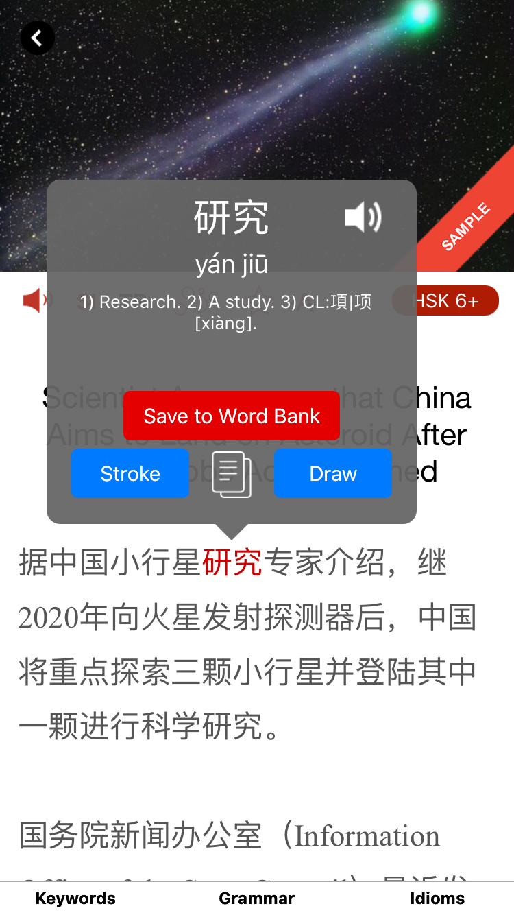 Plataforma multidispositiu. Ofereix una plataforma web des d’on podeu controlar el vostre perfil, una base de dades on acumuleu vocabulari i moltes coses més. Però la cosa no acaba aquí, perquè també disposeu d’una app per a mòbil i tauleta des d’on podeu llegir còmodament. - Lectura assistida. Si esteu llegint un article, només cal que toqueu la paraula que no enteneu i apareix un pop-up amb la traducció en anglès.
